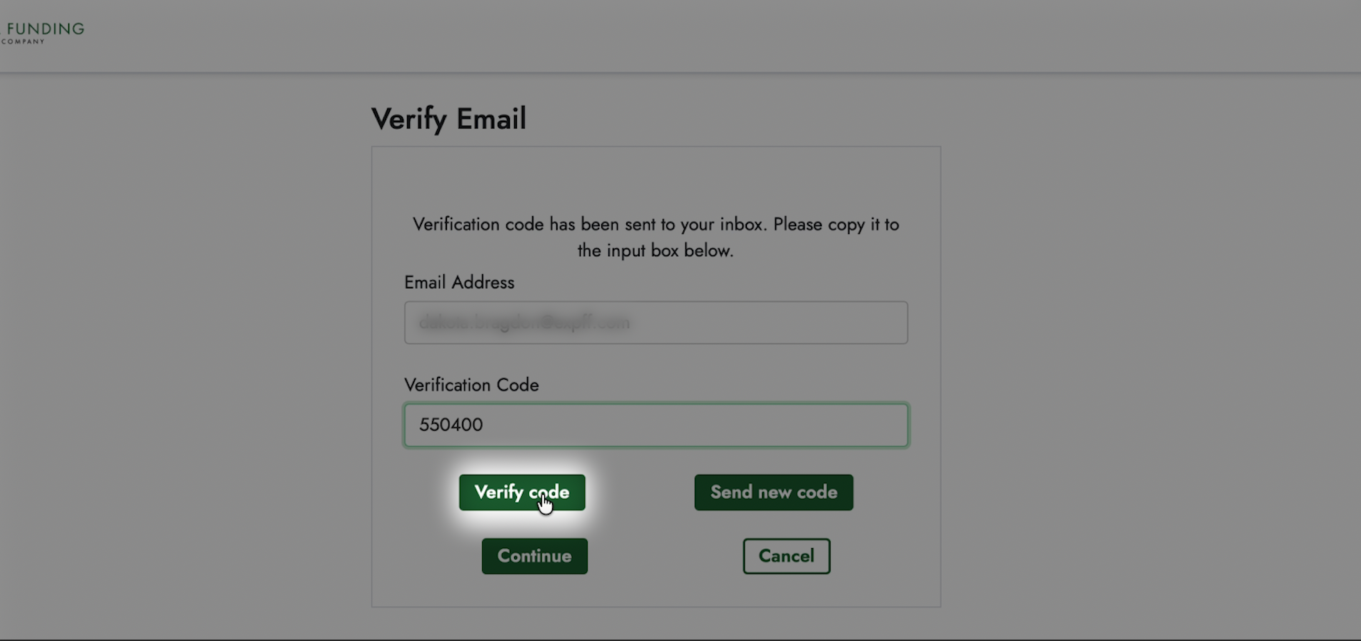 Click "Verify Code" after entering the code you received in your inbox via a verification emailOnce you've entered the verification code, please click the "Verify Code" button and proceed to enter and confirm your new password.